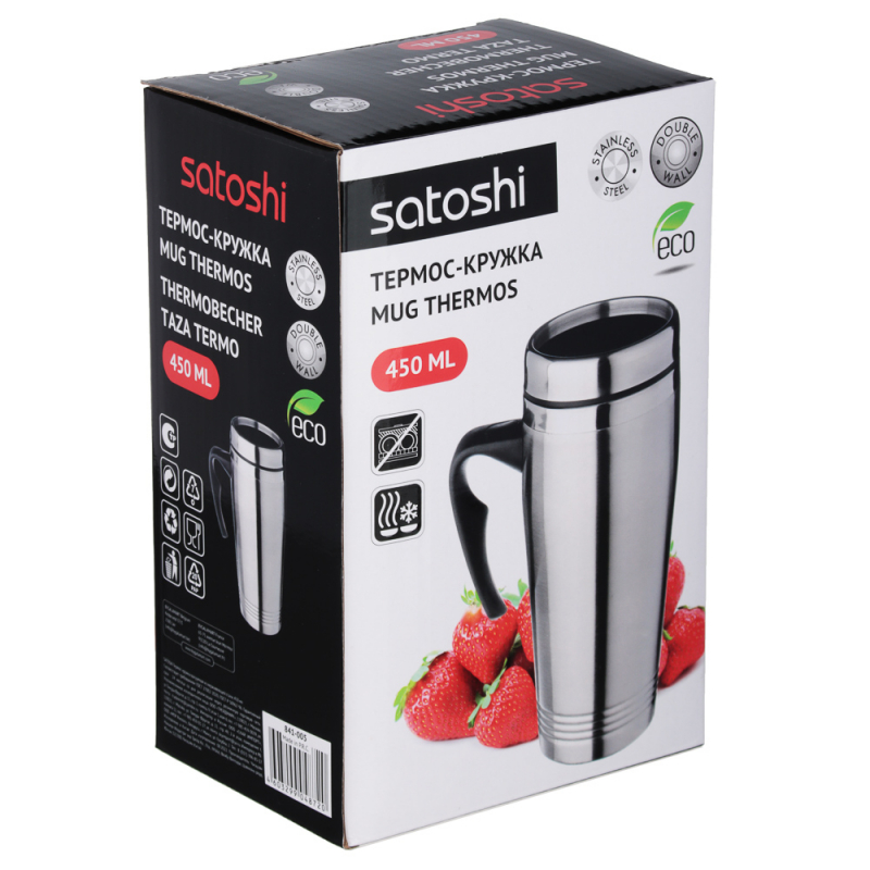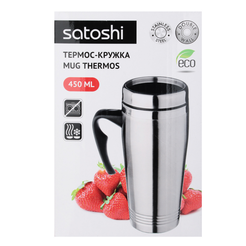 термос-кружка, Размер/объем 500 мл, корпус/ вид колбы нержавеющая сталь, Бренд SATOSHI
