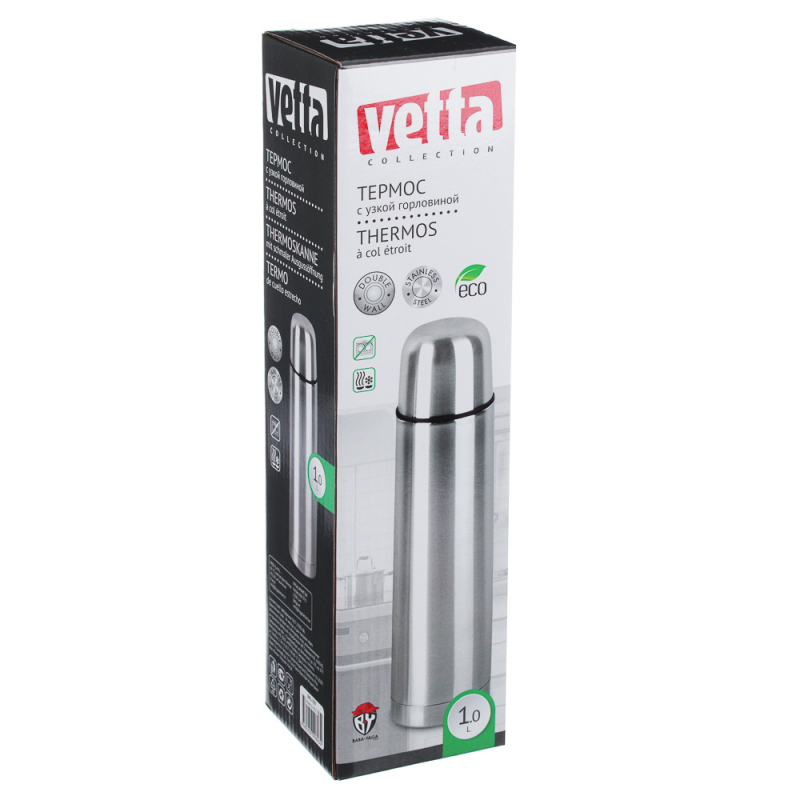 VETTA Термос 1,00л "Буллет" для напитков, серебристый, нержавеющая сталь