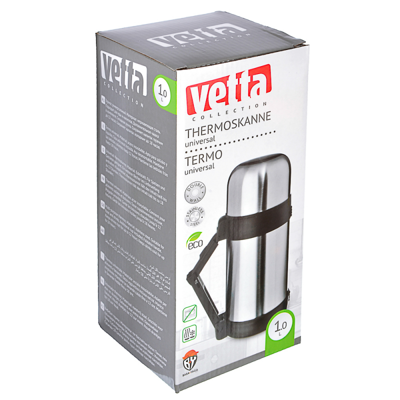 термос, Размер/объем 1,0 л, корпус/ вид колбы нержавеющая сталь, Бренд VETTA
