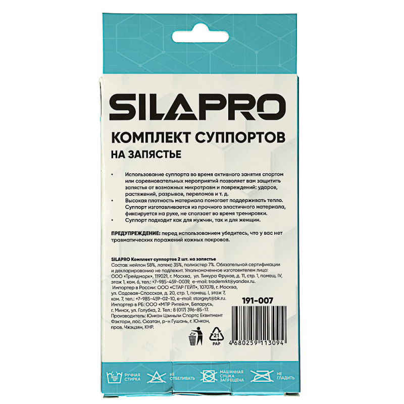 VETTA Комплект суппортов 2шт на запястье, 58% нейлон, 35% латекс, 7% полиэстер, безразмерный, серый