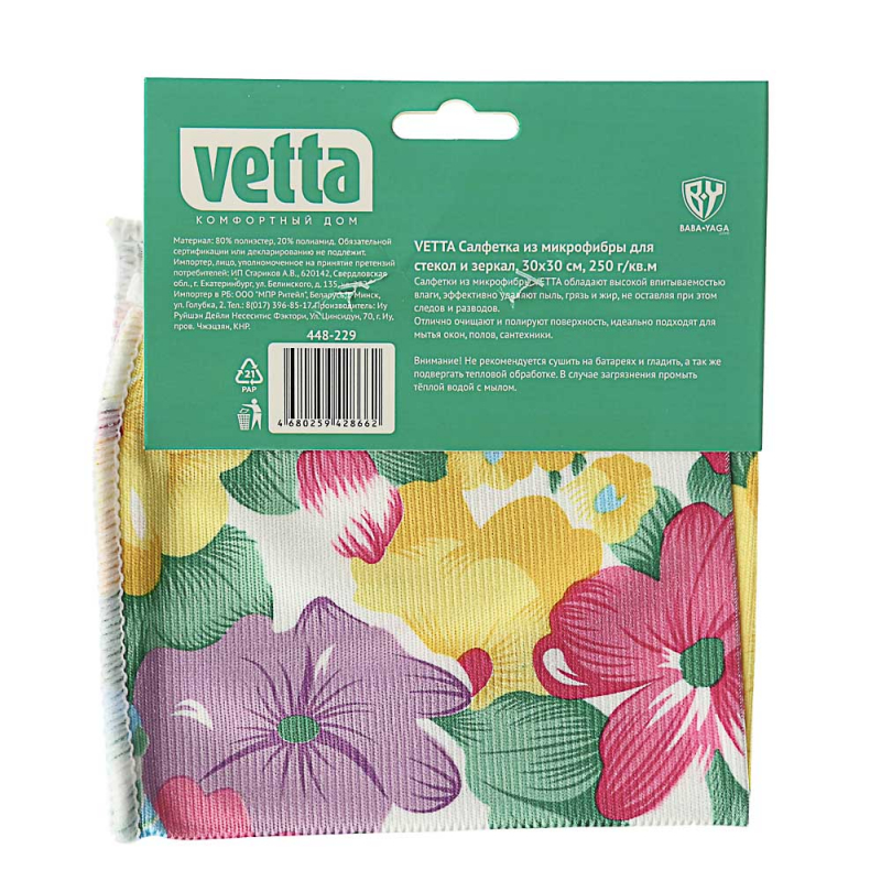 VETTA Салфетка из микрофибры для стекол и зеркал, 30х30см, 250г/кв.м, 3 дизайна