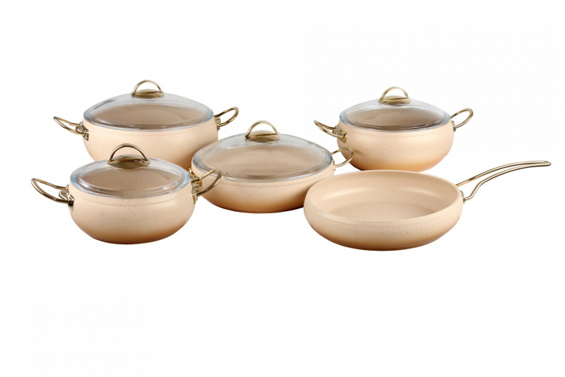 OMS Набор посуды с а/п покр из 9(5/4)пр.(крыш стекл, руч ст.), цв.крм(К 2,5/4,5/6,5 СОТ 3,5 СК 2,8)