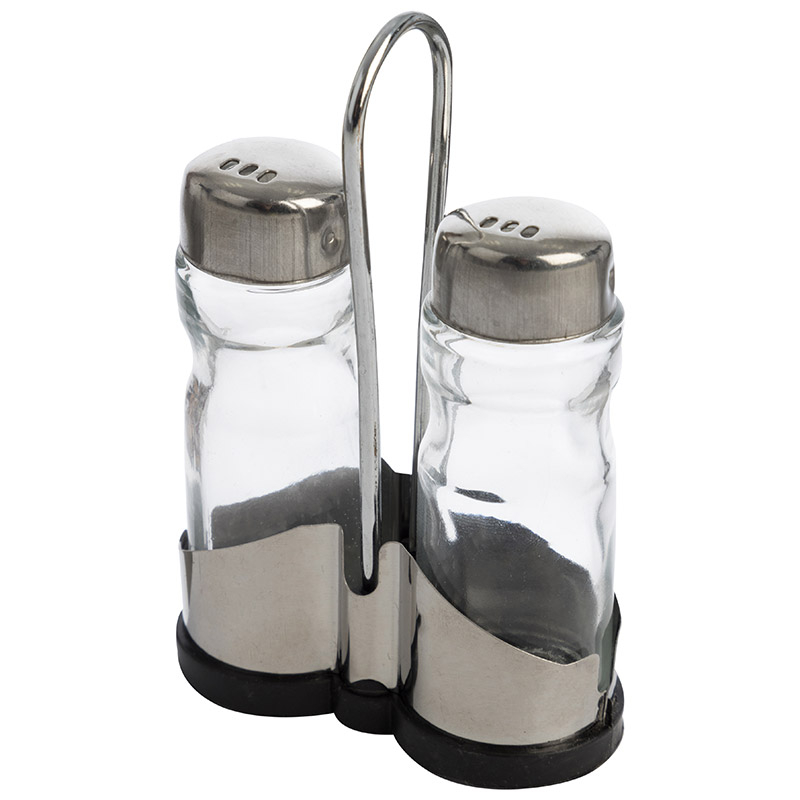 СКР Набор из 3 предметов SPEZIA: солонка 40мл и перечница 40 мл на подставке (нерж.сталь, стекло)