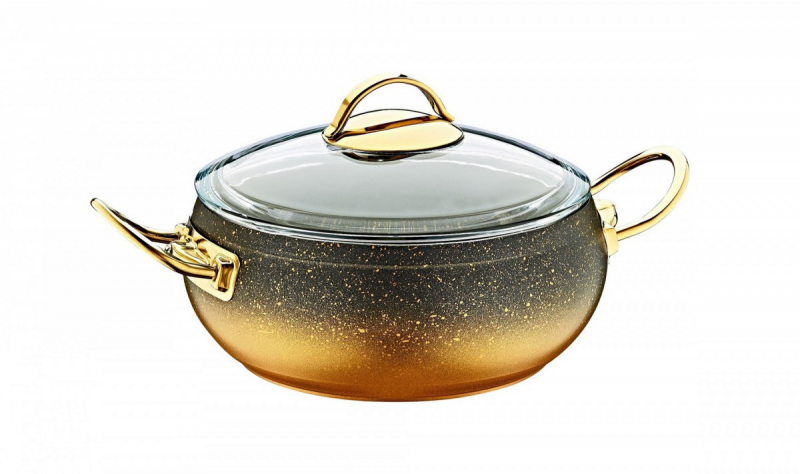 OMS Кастрюля цв.черн./золотой 2,5 л (20 х 9 см) с а/п покрытием, крышка стеклянная