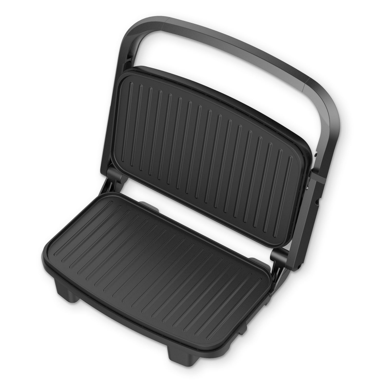Мощность 1000Вт, Многофункциональный гриль: панини-гриль, гриль, бутербродница, тостер, прибор для приготовления сосисок. Индикация работы, Размер панелей 26x15,4 см, Индикация нагрева, Равномерный результат, Автоматический температурный контроль, Безопасная ручка, Система фиксации, Антипригарное покрытие для легкой очистки, Компактное хранение