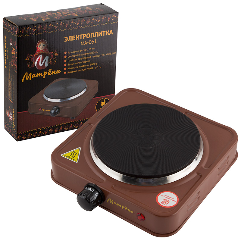 Электроплита Матрёна МА-061, коричневый, блин (1000 Вт, Защита от перегрева)