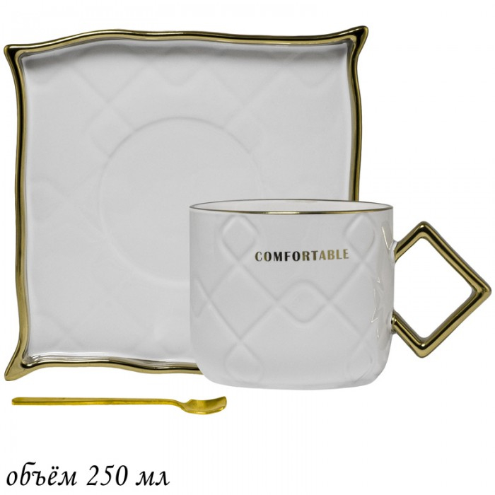 LENARDI Чашка с блюдцем и ложкой в под.уп.(х36) Белый 250 мл.