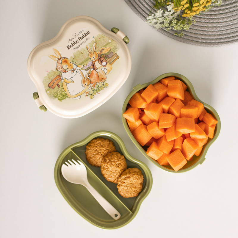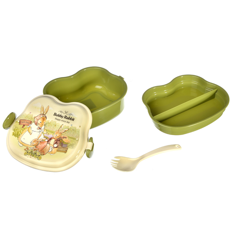 VETTA Ланчбокс квадратный, тарелка, ложка-вилка, 16,5х12см, пластик, "Зайчата" 0,7