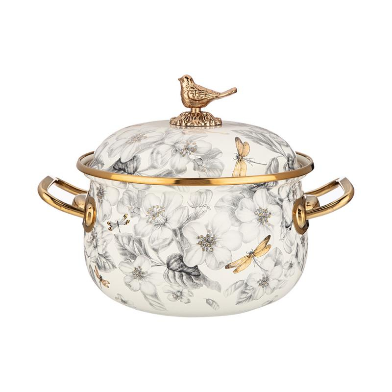 ARTI-M КАСТРЮЛЯ ЭМАЛИРОВАННАЯ AGNESS С КРЫШКОЙ, СЕРИЯ APPLE GARDEN, 2,1Л, ДИА.16СМ
