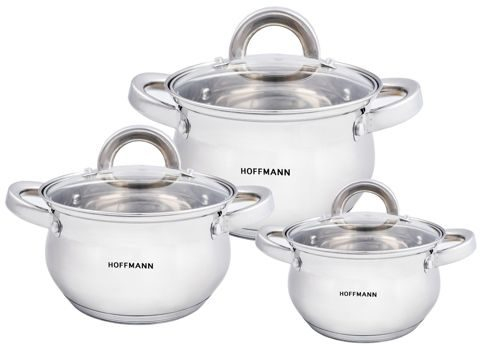 HOFFMANN Набор кастрюль, нерж. сталь, 5-ти сл. капс. дно, 6 предм.( 6 шт.) 2,1 л.,3,1 л., 4,1 л.