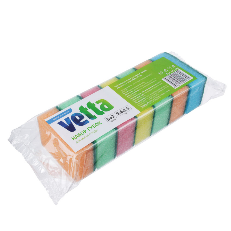 VETTA Набор губок для мытья посуды "Эконом" 5+2 шт, 9х6х3,5см
