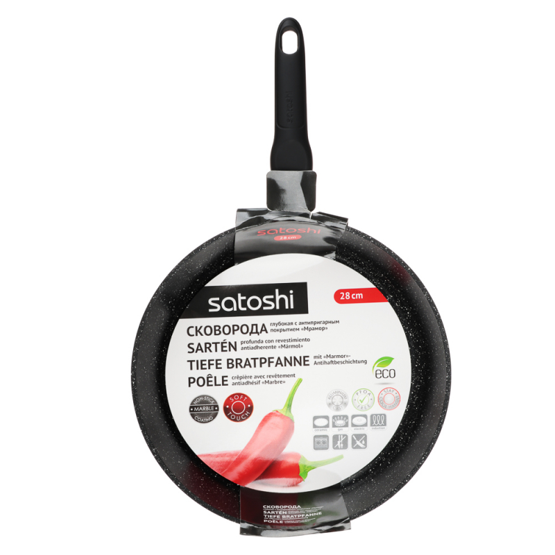 VETTA SATOSHI Стоун Сковорода литая глубокая d28см, антипригарное покрытие Мрамор, индукция