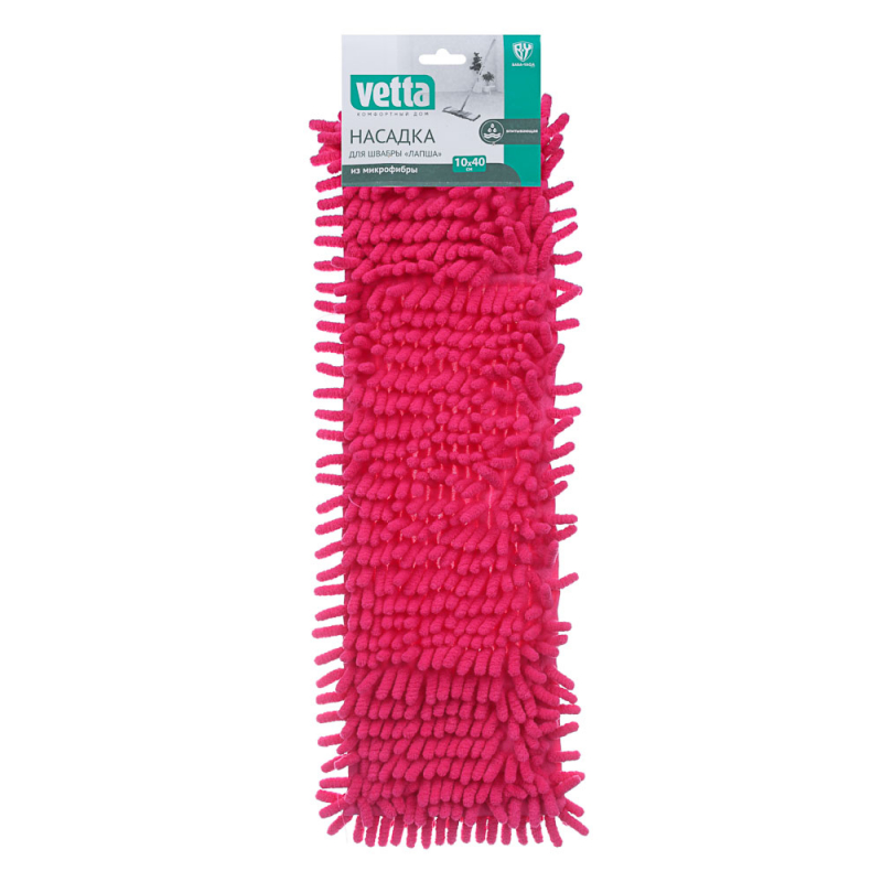 VETTA Насадка для швабры из микрофиб., подкл. полиэст., 10х40см, "Лапша", 4 цвета, вес 95 г.