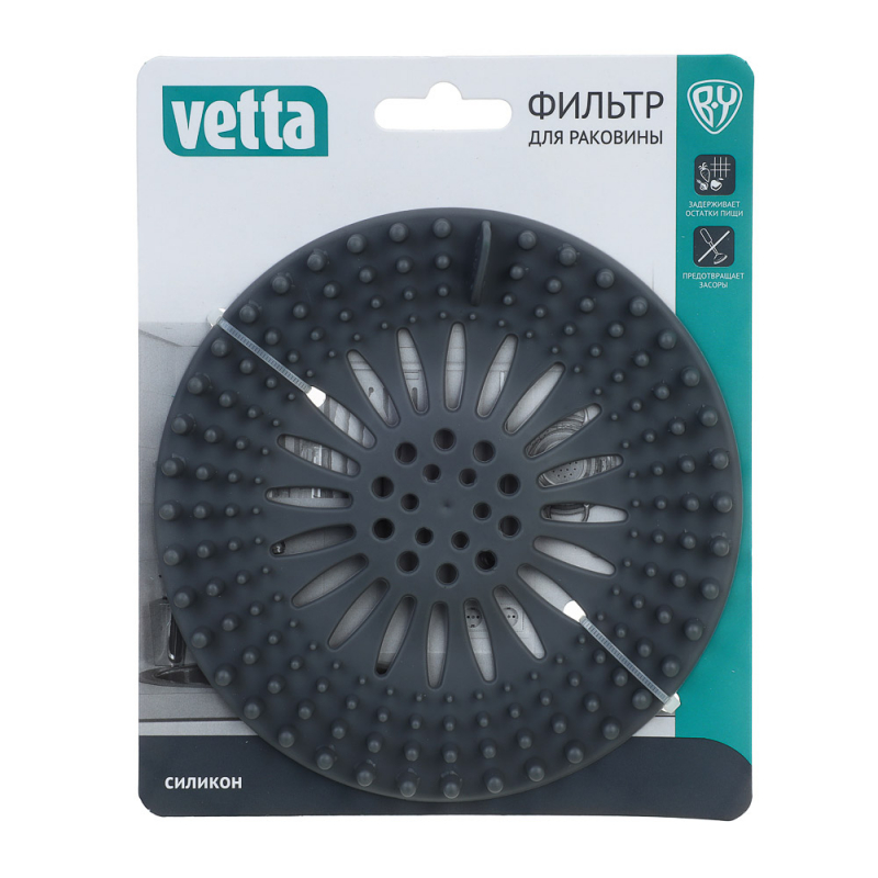 Силиконовый фильтр для раковины VETTA – современное решение для предотвращения засоров труб на кухне. Эффективно задерживает остатки пищи во время мытья посуды. Гибкий силикон отлично прилегает к поверхности слива, не всплывает и не смещается. Оптимальный размер отверстий хорошо пропускает воду. Поверхность с небольшими мягкими выпуклыми шипами разного размера позволяет задерживать волосы и другие загрязнения. Изделие легко моется, а для удобного захвата предусмотрен маленький выступающий держат