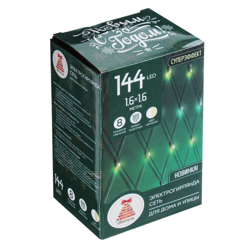 VETTA СНОУ БУМ Гирлянда эл. сеть водопад 144LED,1,6x1,6м, белый/шампань, 8 реж, ПВХ прозр.,220В
