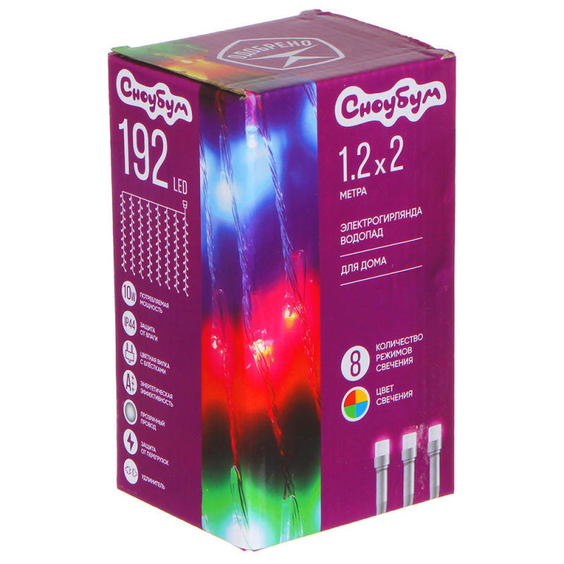 VETTA СНОУ БУМ Гирлянда электр.Водопад 200LED, 1,2х2м, 10 нитей, мульти, 8 реж, силик.провод, 220В