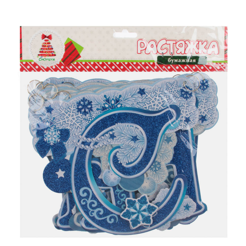 Растяжка “С Новым годом!” от Сноу Бум - подходит для дома, детских садов, школ, офисов. Растяжка из бумаги - ее легко прикрепить к стене или шторам. Длина 230 см - подходит для больших помещений. Цвет - синий, украшена снежинками. Купите, чтобы создать праздничное настроение!