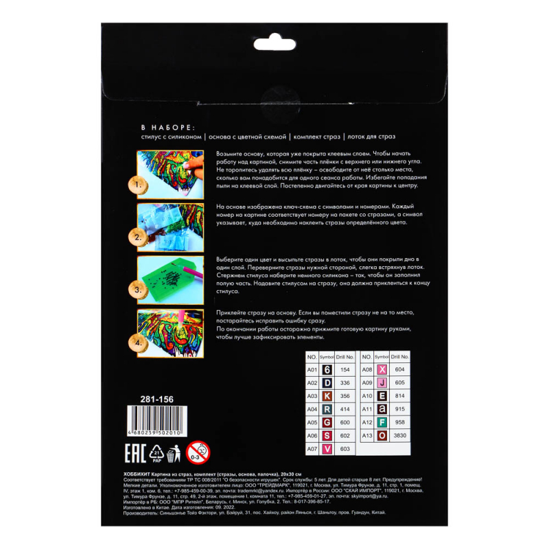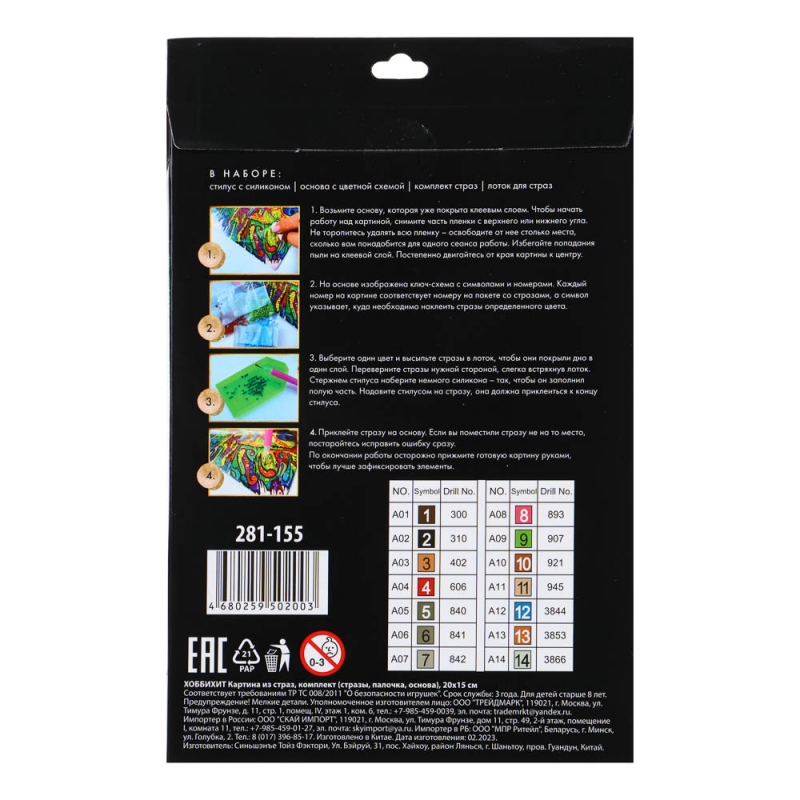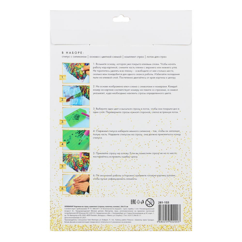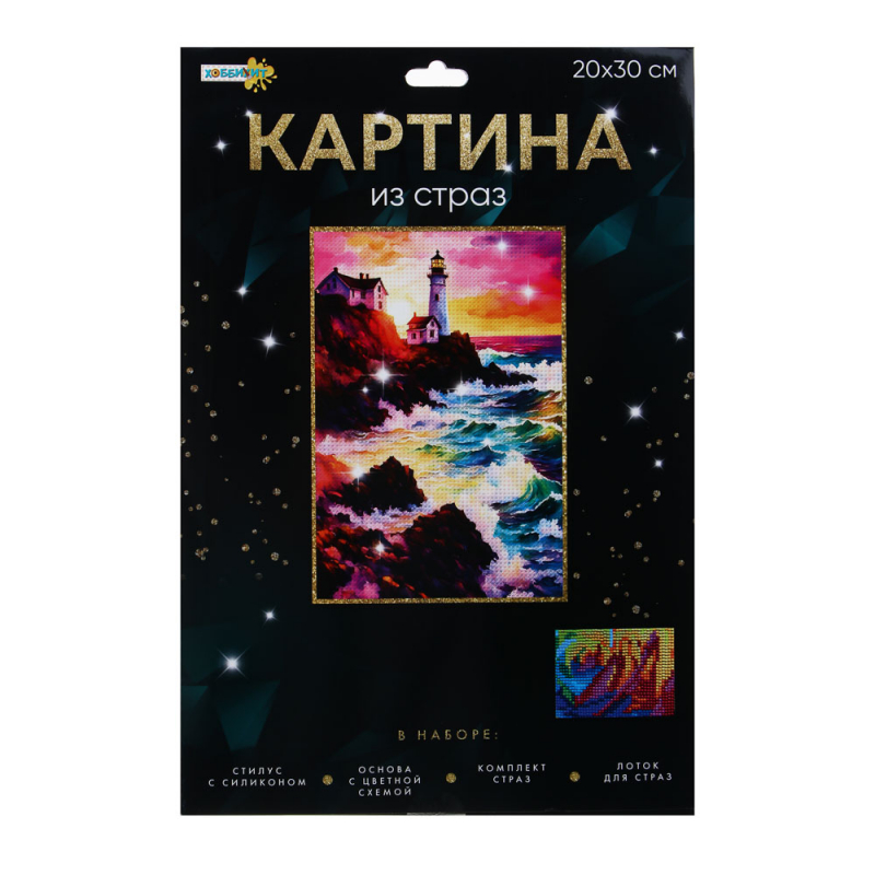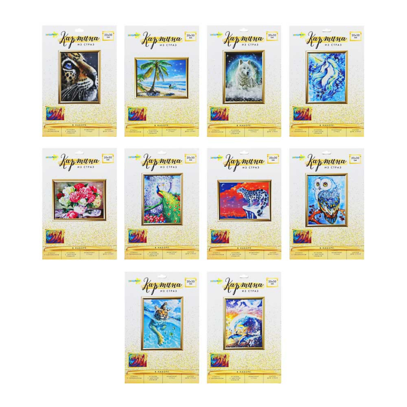 VETTA ХОББИХИТ Картина из страз, комплект (стразы, палочка, основа, мольберт), 10х15см, 10 дизайнов