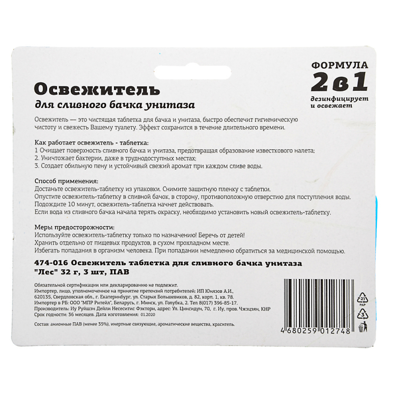 VETTA Освежитель таблетка для сливного бачка унитаза "Лес" 32гр. 3шт, (ПАВ), блистер