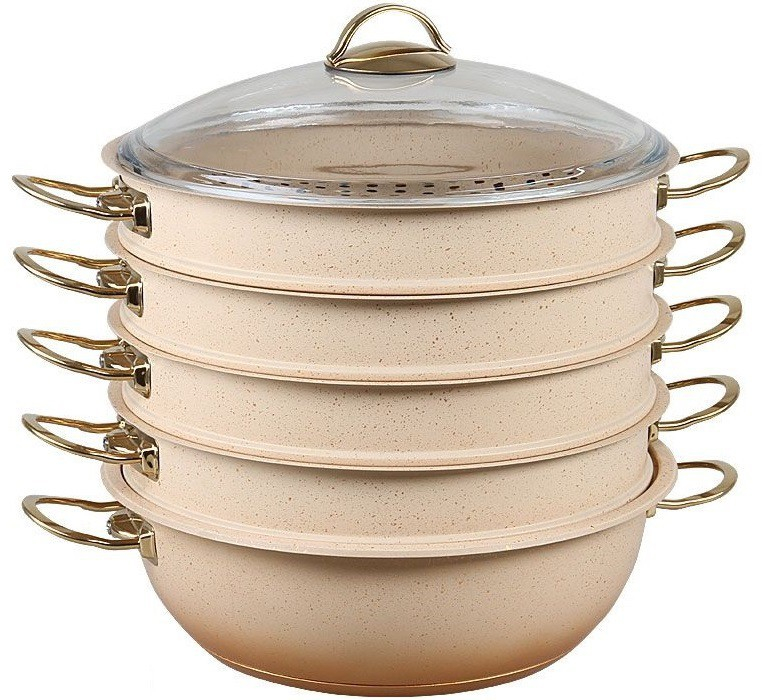 OMS Мантоварка из нерж.стали с а/п покрытием 6,4 л (30 х 10 см), крышка стеклянная, цв.кремовый |609