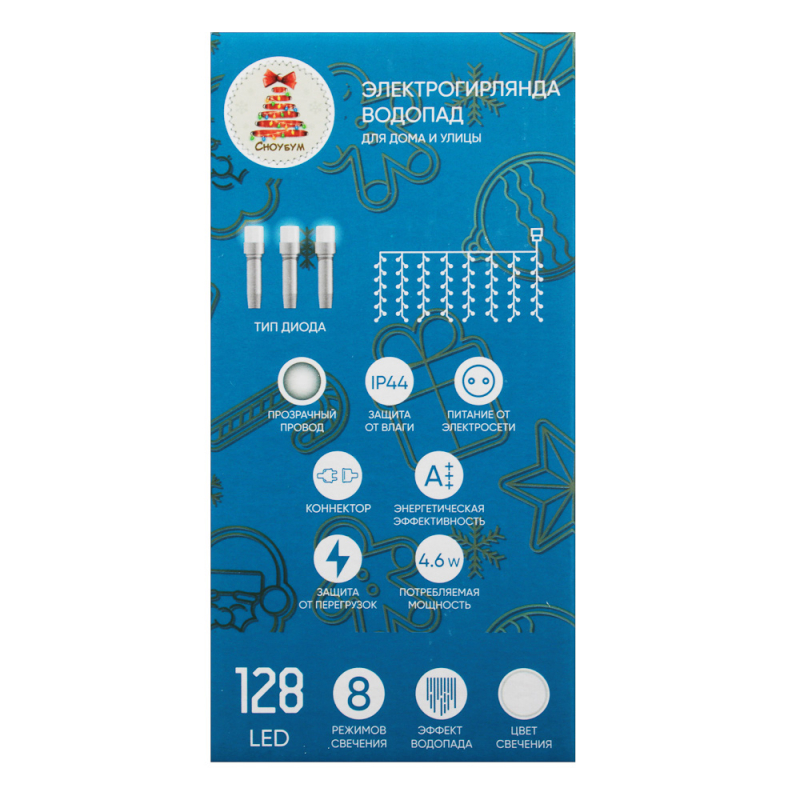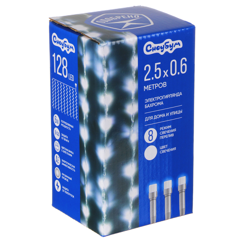VETTA Гирлянда электрическая Бахрома 2,5х0,6 м, 128 LED, с эффектом белого водопада, 8 режимов, 220В