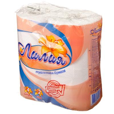 туалетная бумага, Количество 4 рулона, Страна производитель Россия, Бренд Лилия
