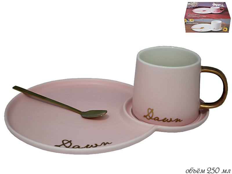 LENARDI Чашка 250 мл с блюдцем и ложкой в под.уп.(х20)