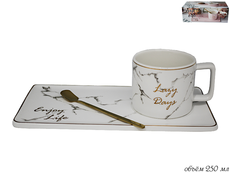 LENARDI Чашка с блюдцем и ложкой в под.уп.250 мл.