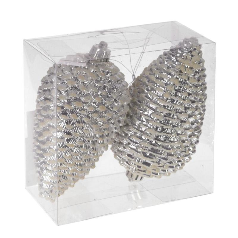 РЕМЕКО Новогоднее украшение “Шишки” (серебро), H 12см (блок)