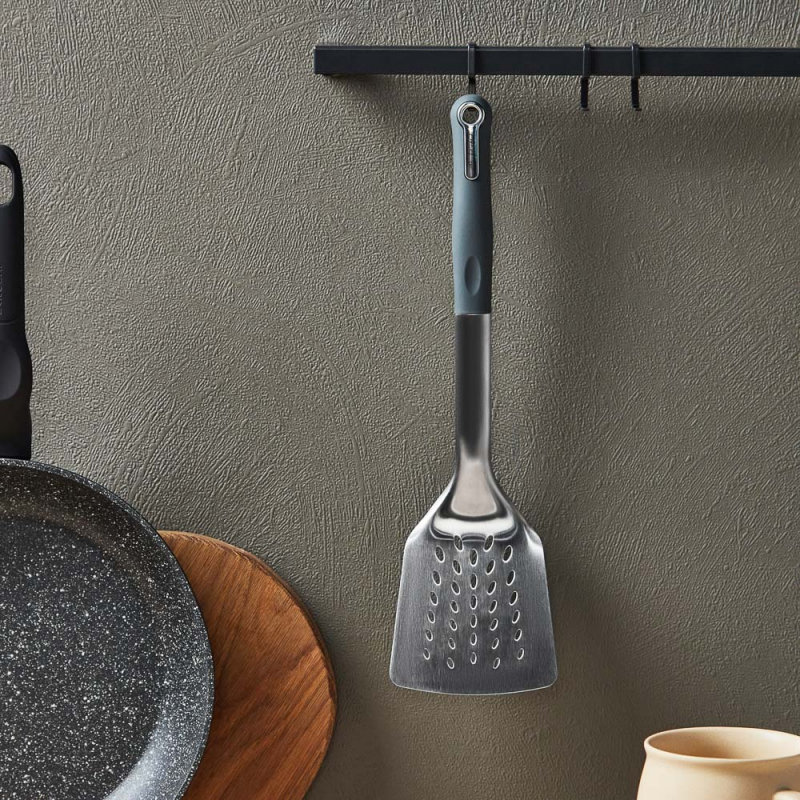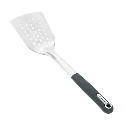 Лопатка с прорезями IVLEV CHEF «Fusion» из нержавеющей стали – удобный инструмент для переворачивания котлет, стейков, рыбы и других продуктов во время жарки на сковороде, а также для подачи готовых блюд. Благодаря отверстиям, лишняя жидкость, масло и жир стекают в сковороду и не оказываются на тарелке, что делает сервировку более аккуратной. Имеет удобную ручку со специальным отверстием, за которое ее можно подвесить в нужном месте на кухне.