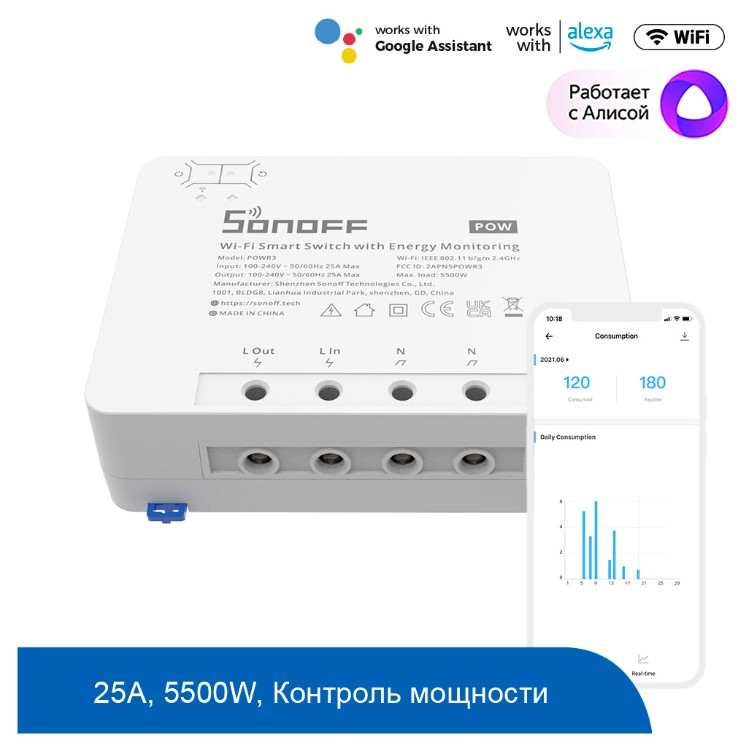 Wi-fi реле Sonoff POWR3 Elite Smart Power Meter Switch 20D