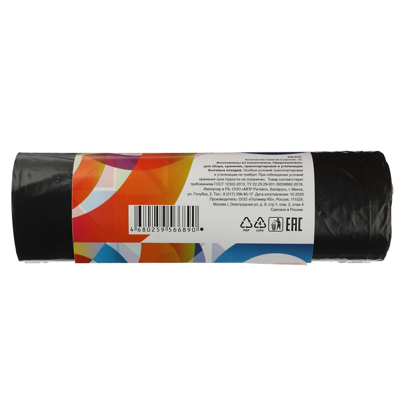 VETTA Мешки для мусора 160л, ПВД 25мкм, черные, 10 шт в рулоне, GRIFON