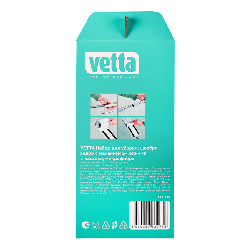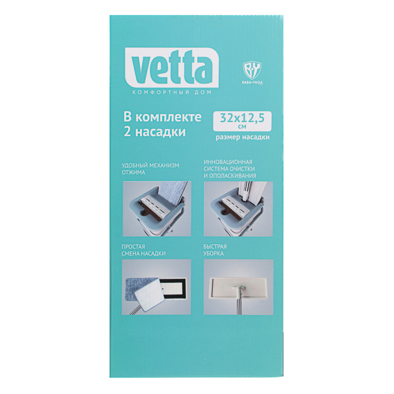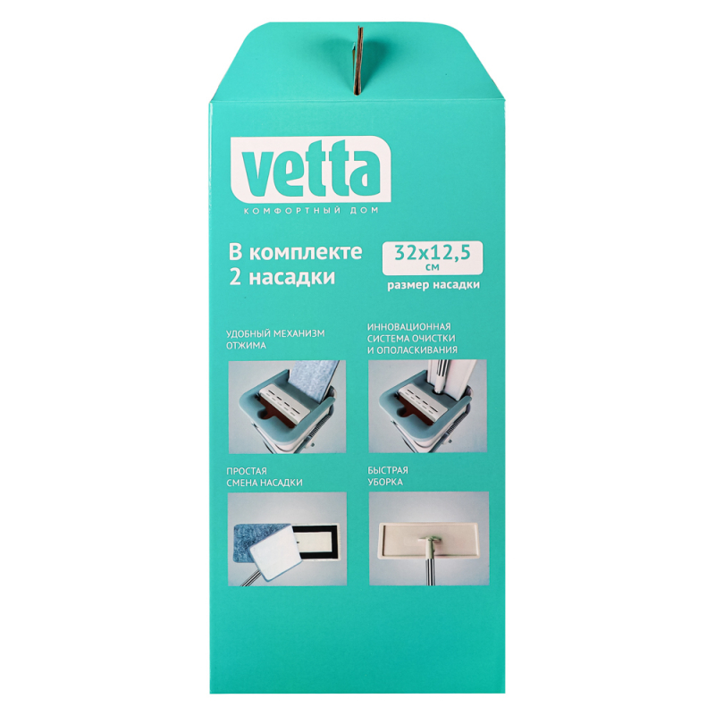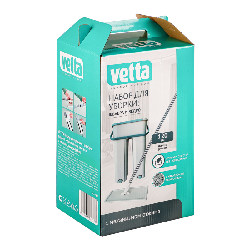 VETTA Набор для уборки: швабра, ведро с механизмом отжима, 2 насадки, микрофибра