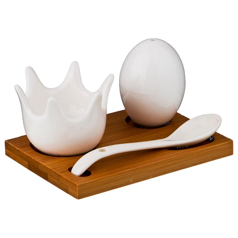 ARTI-M НАБОР ДЛЯ ЗАВТРАКА 3ПР.: ПОДСТАВКА ДЛЯ ЯЙЦА + СОЛОНКА + ЛОЖКА НА ПОДСТАВКЕ 11,5*8 СМ ВЫСОТА=
