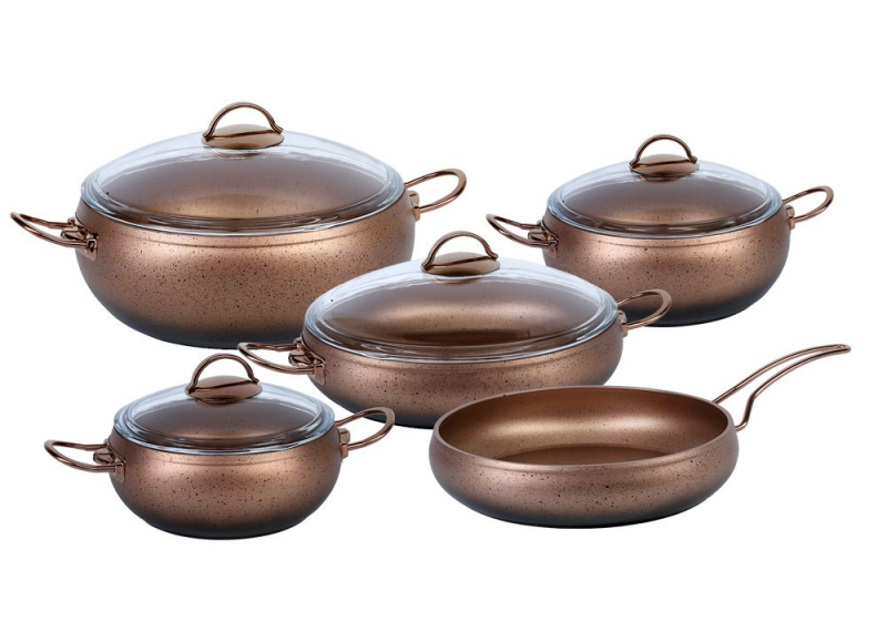 OMS Набор посуды с а/п покр из 9 (5/4) предм.(2,5л,4,5л,6,5л,3,5) (кр стек, рчк сталь.), цв.капучино