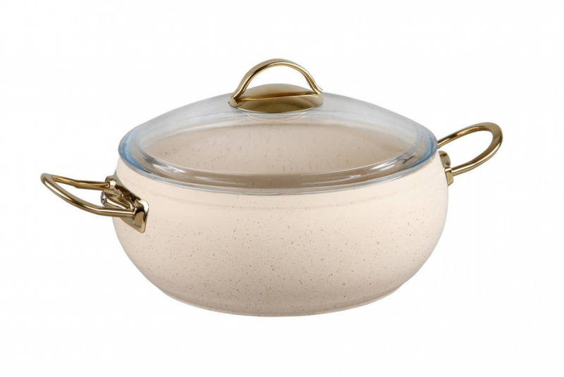 OMS Кастрюля цв.айвори 6,6 л (28 х 11,5 см) с а/п покрытием, крышка стеклянная
