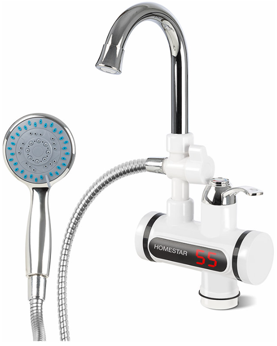 Водонагреватель проточный HomeStar HS-0113D кран+ душ 3кВт 30-60 ͦ C