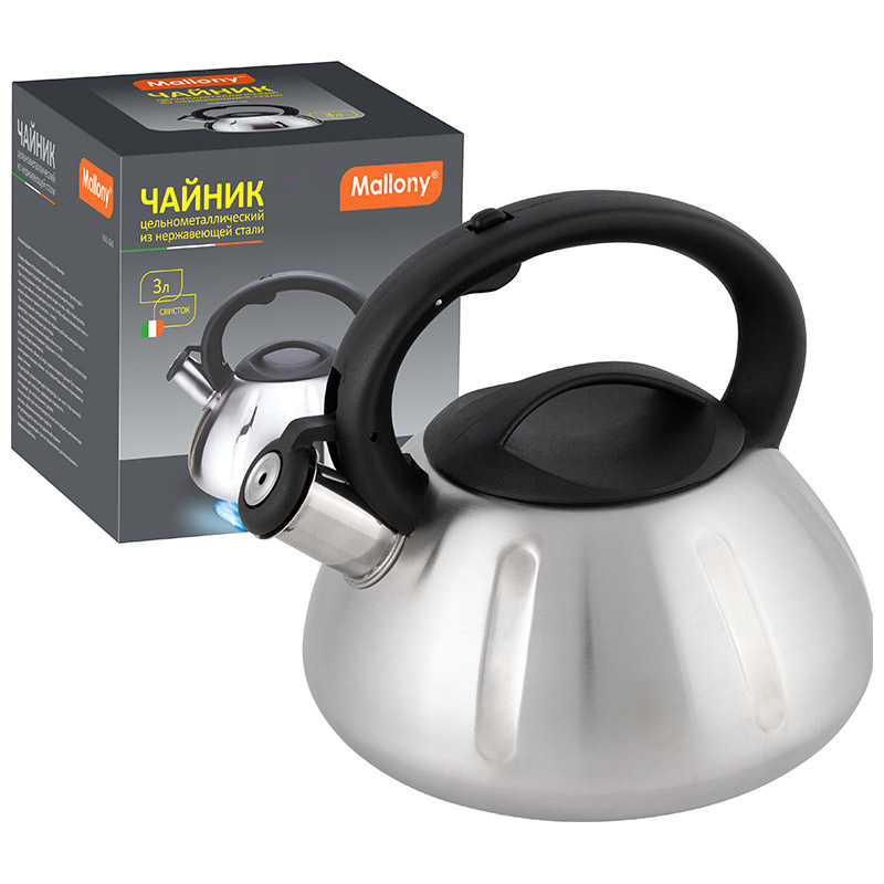 СКР Чайник из нерж. стали MAL-066, 3 литра, цельнометаллический, матовый,со свистком