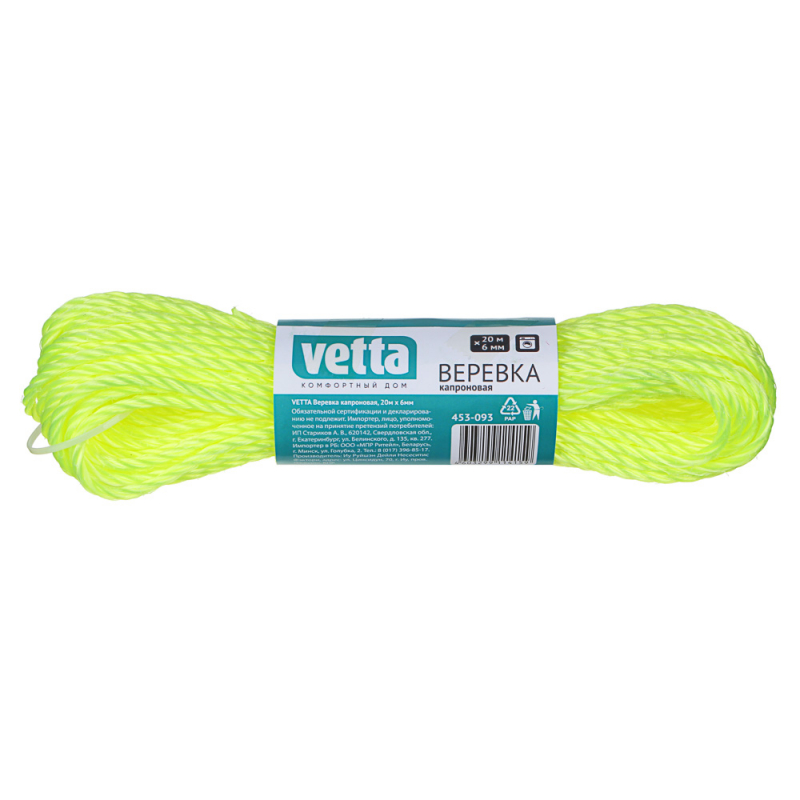 VETTA Веревка капроновая, 20м x 6мм, 4 цвета ВЕСЕЛЫЙ РОДЖЕР