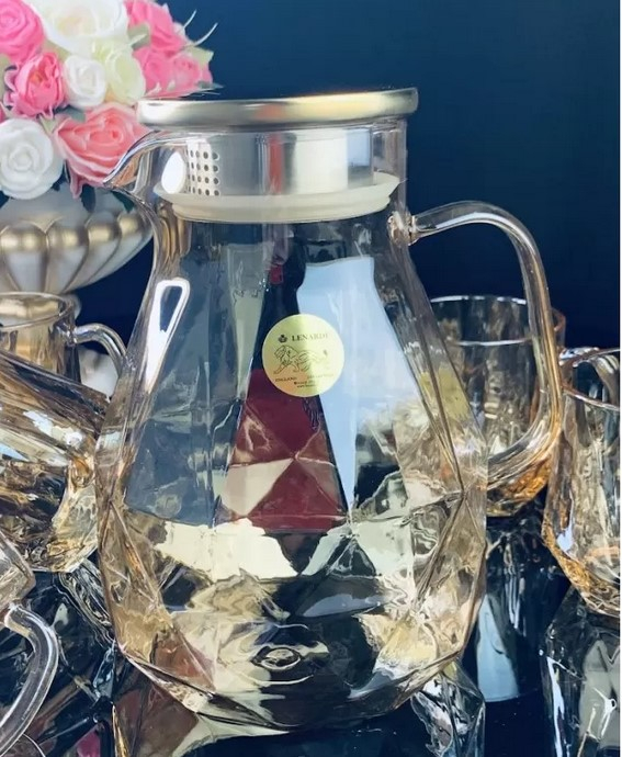 LENARDI Набор: кувшин-заварник 1,9 л и 6 кружек 350 мл золото, в под.уп.(х8)