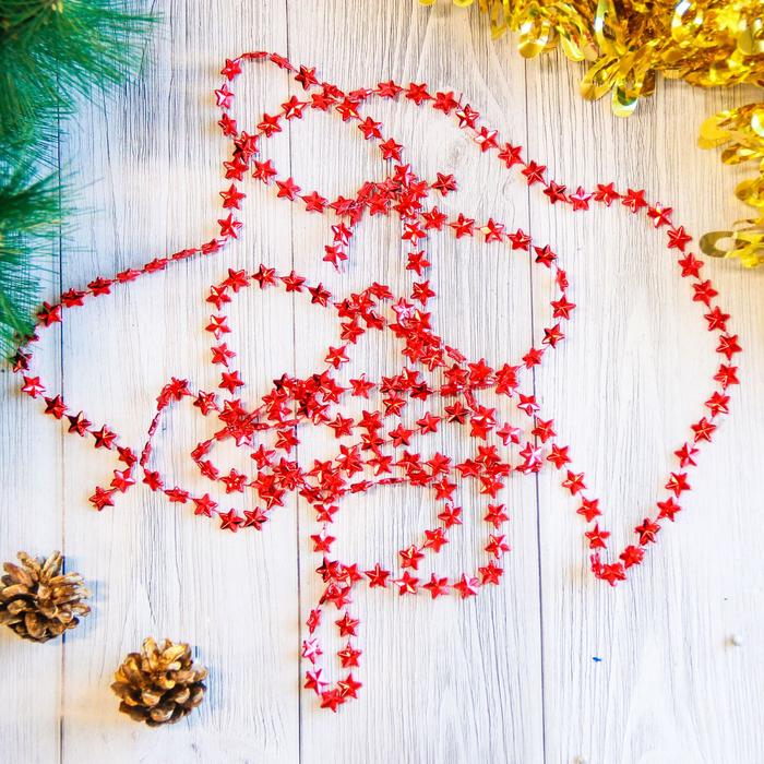 SL Бусы на ёлку 270 см "Звёзды" красные d-0,9 см 2371381