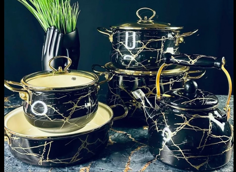LENARDI Набор эмалированной посуды из 9 предметов ЧЕРНЫЙ МРАМОР в под.уп.(х2)