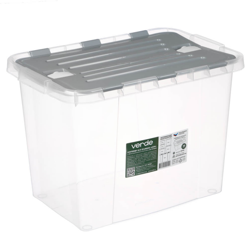 Контейнер для хранения Verde Страна производства - Россия Материал - Пластик Размер - 30х43,3х21 см Объем - 26 л Цвет - Серый