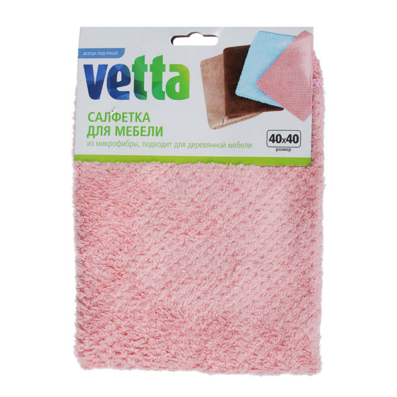 VETTA Салфетка из микрофибры для мебели ультравпитывающая 40х40см, 280г/кв.м.