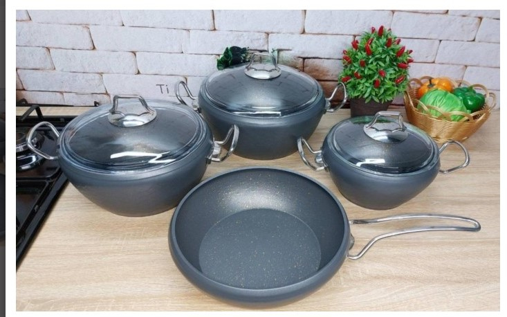 OMS ПОСУДЫ ИЗ ГРАНИТА С АПП 7(4/3) предм.(4,6/3,7/2,1/2,7 л.), серый, ручки стальные