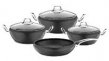 кастрюли 4.6 л, 3.7 л, 2.1 л (с крышками), сковорода 2.7 л (без крышки)
