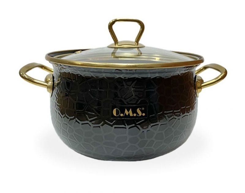 OMS Кастрюля эмалированная д.16 (2,1 л), цвет: черный, цвет ручек: золото, арт. 1008-VL-16-Gd