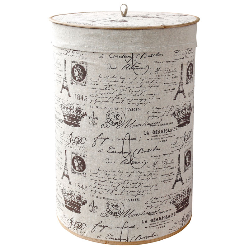 СКР Корзина для белья бамбуковая складная круглая с крышкой и декоративным покрытием из натурального