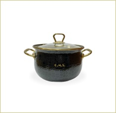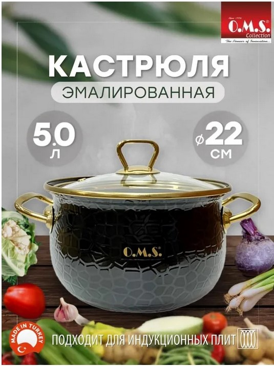 OMS Кастрюля эмалированная д.22 (5 л), цвет: черный, цвет ручек: золото, арт. 1009-Bk-22-Gd