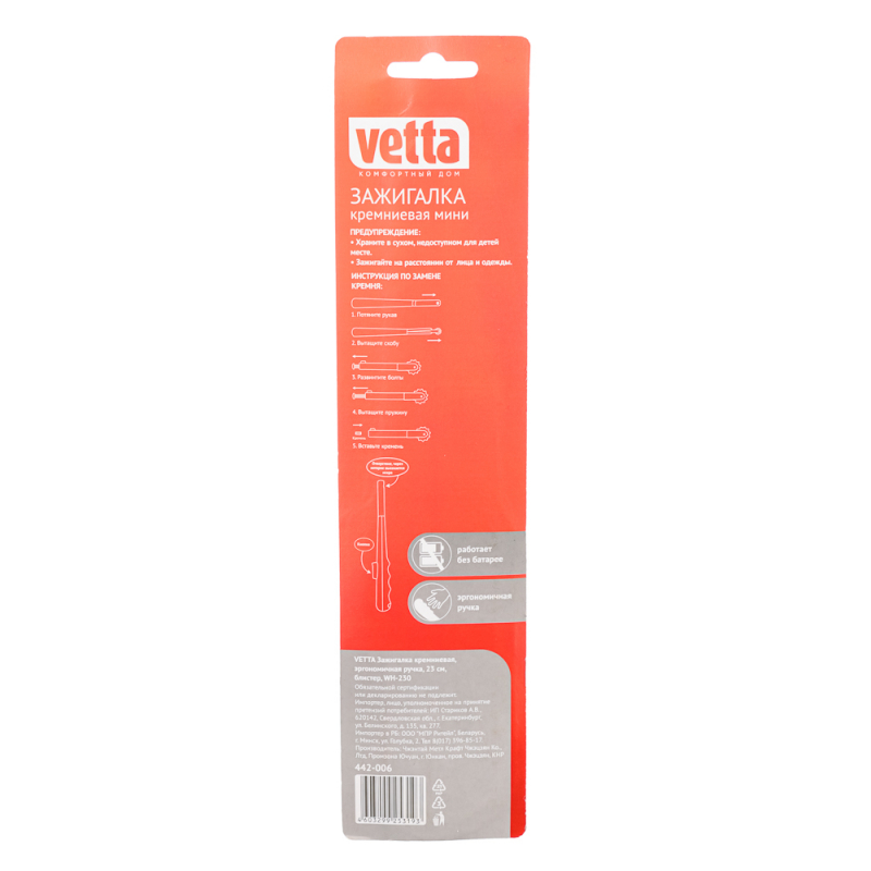 VETTA Зажигалка кремниевая, эргономичная ручка, 23см, блистер, WH-230
